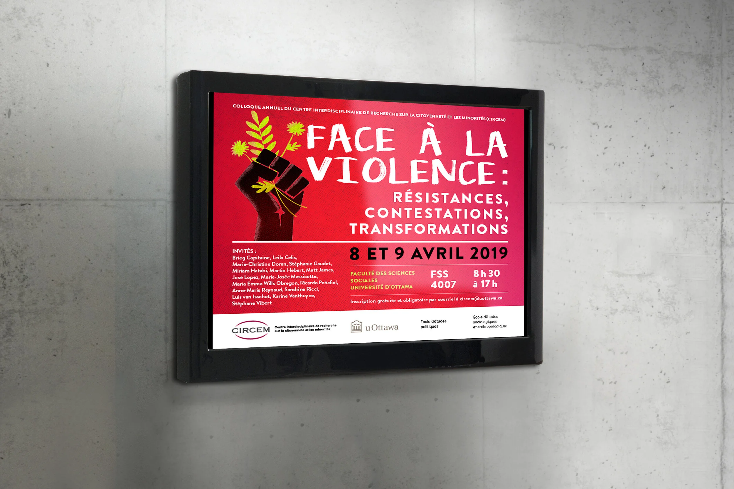 Nous avons été mandatés par le CIRCEM pour leur colloque annuel 2019. Le Centre interdisciplinaire de recherche sur la citoyenneté et les minorités (CIRCEM) est un lieu de convergence pour les chercheurs de l’Université d’Ottawa préoccupés par les questions sur la citoyenneté et les groupes minoritaires.